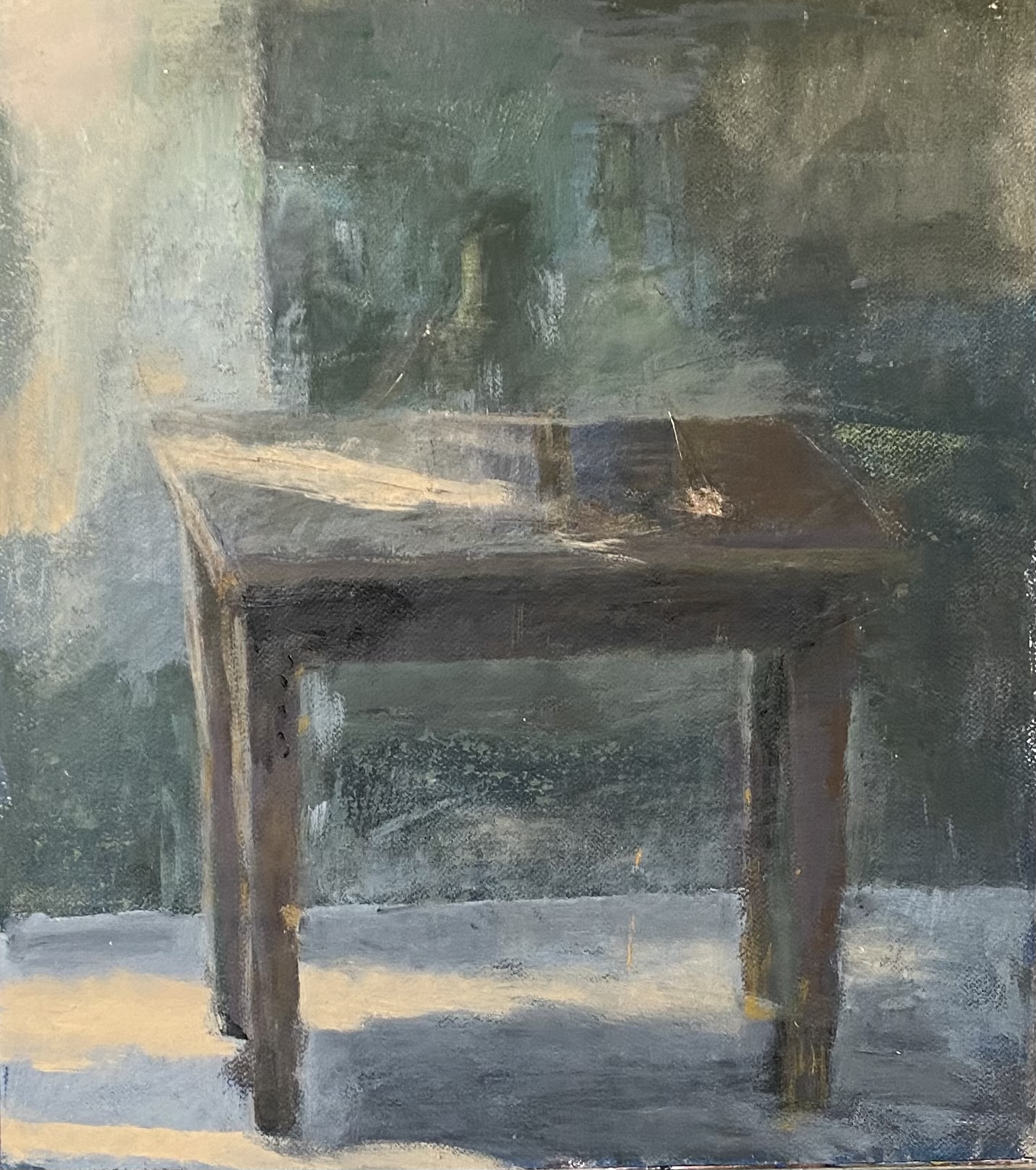 Lissabon, 2024 Räumliches, 2026 Stilleben am Gartenhaus 2026 Tisch im halbdunkel, 2023 Venezanische Häuser, 2025 Flaschentreffen, 2025 Tisch mit Stuhl, 2024 Räumliches 2, 2026